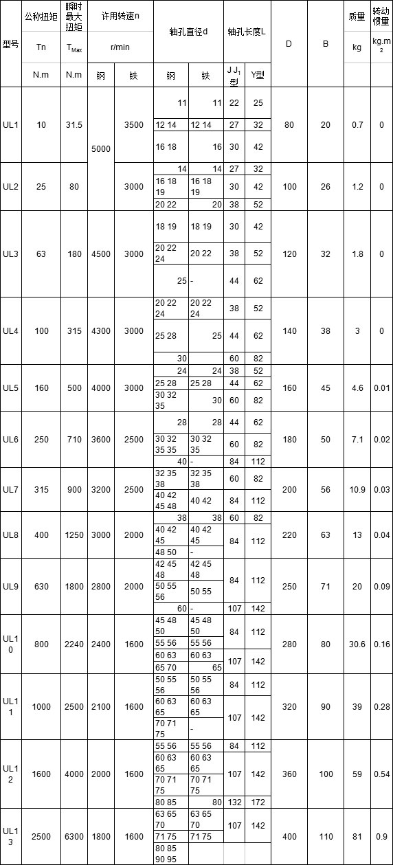 UL型轮胎式联轴器的基本参数和主要尺寸:(GB/T 5844-86) mm