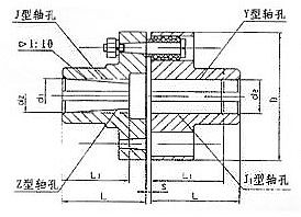 TL(LT)型弹性套柱销联轴器 特点及应用场合:具有一定补偿两轴线相对偏移和减振、缓冲性能,结构简单,制造容易,不需润滑,维修方便,径向尺寸较大,适用于安装底座刚性好,对中精度较高,冲击载荷不大,对减振要求不高的轴系传动,适用范围广泛,是我国最早通用标准联轴器。不适用于高速和低速重载工况条件。