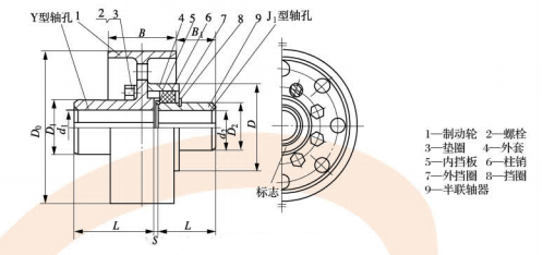 ZLL型带制动轮弹性柱柱销齿式联轴器基本参数与主要尺寸 mm